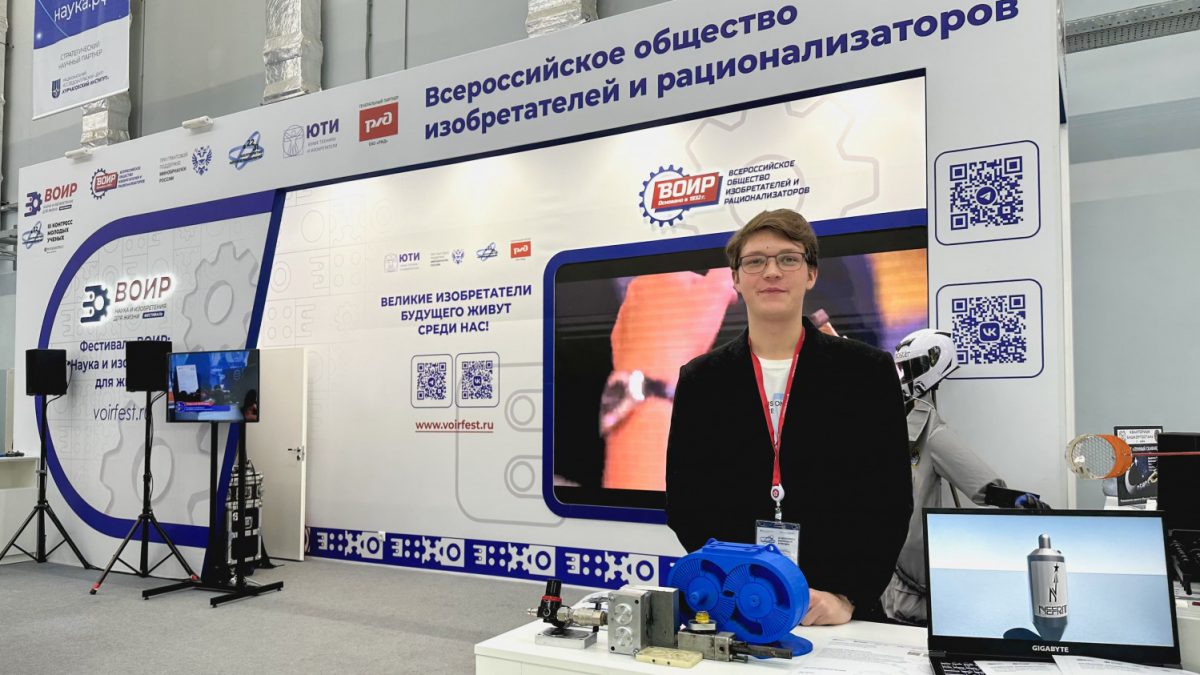 Студент РТУ МИРЭА Макар Климов представил мотор нового бироторного двигателя внутреннего сгорания с повышенным коэффициентом полезного действия (КПД) на стенде Всероссийского общества изобретателей и рационализаторов III Конгресса молодых учёных.